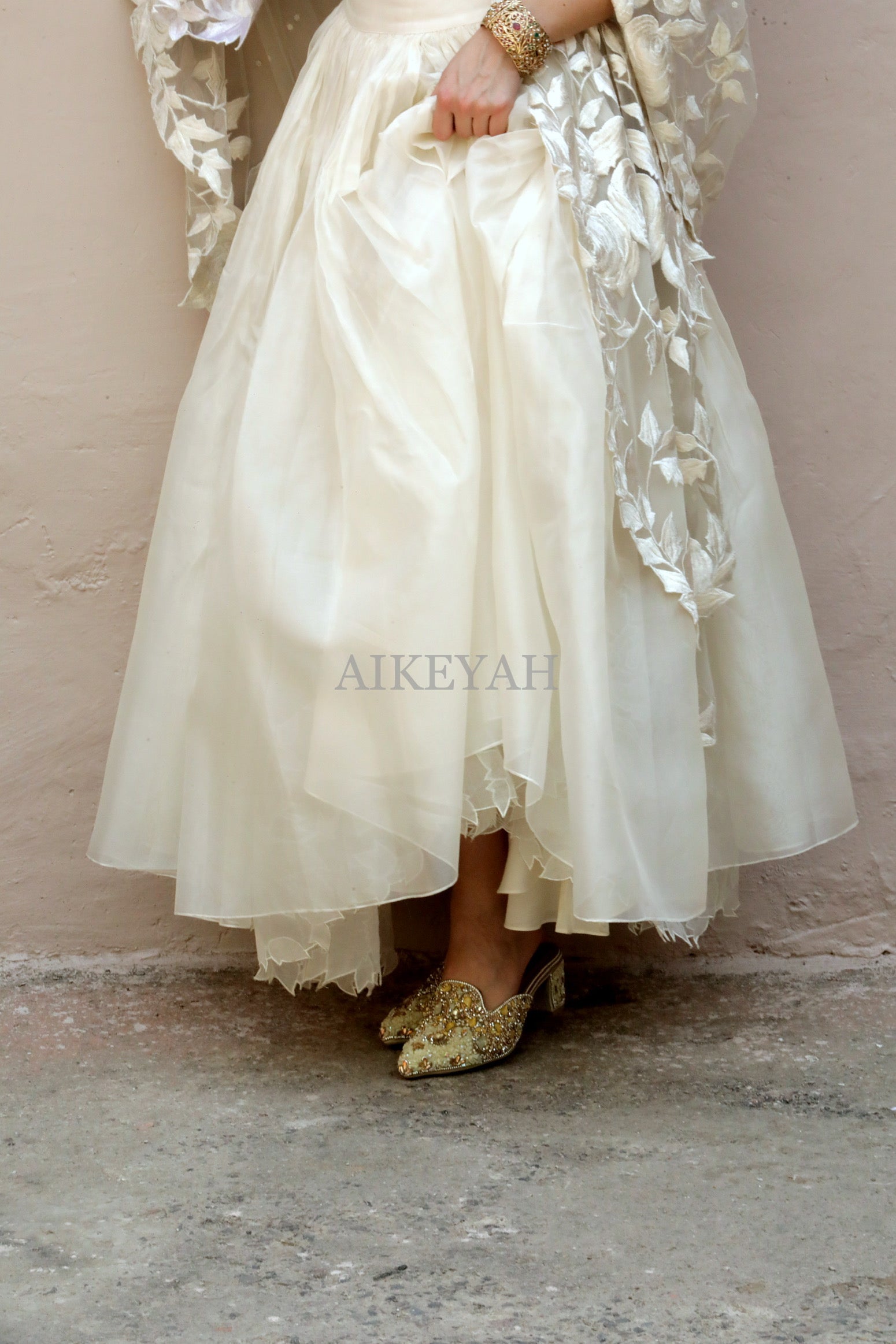 At Aikeyah, the garments are handmade and hand embroidered with very fine delicate materials , using only pure fabrics like silks, chiffons, organza, chanderi, crepe and 100 % cotton. We also develop our own surfaces using techniques like appliqué, and other surface ornamentations. These beautiful developed fabrics are then stitched into wearable clothing. Thereby, requiring utmost care in handling and maintaining, making it imperative to be gentle with all Aikeyah’s Clothing.