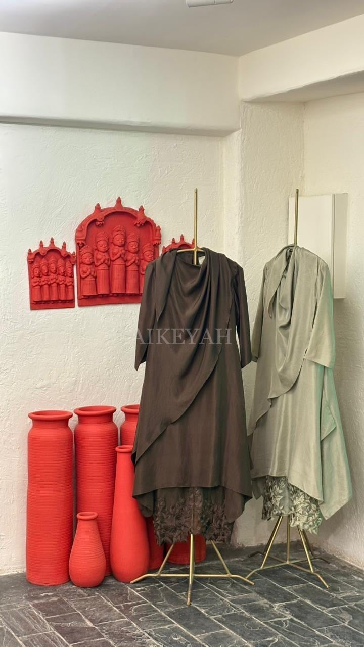 At Aikeyah, the garments are handmade and hand embroidered with very fine delicate materials , using only pure fabrics like silks, chiffons, organza, chanderi, crepe and 100 % cotton. We also develop our own surfaces using techniques like appliqué, and other surface ornamentations. These beautiful developed fabrics are then stitched into wearable clothing. Thereby, requiring utmost care in handling and maintaining, making it imperative to be gentle with all Aikeyah’s Clothing.