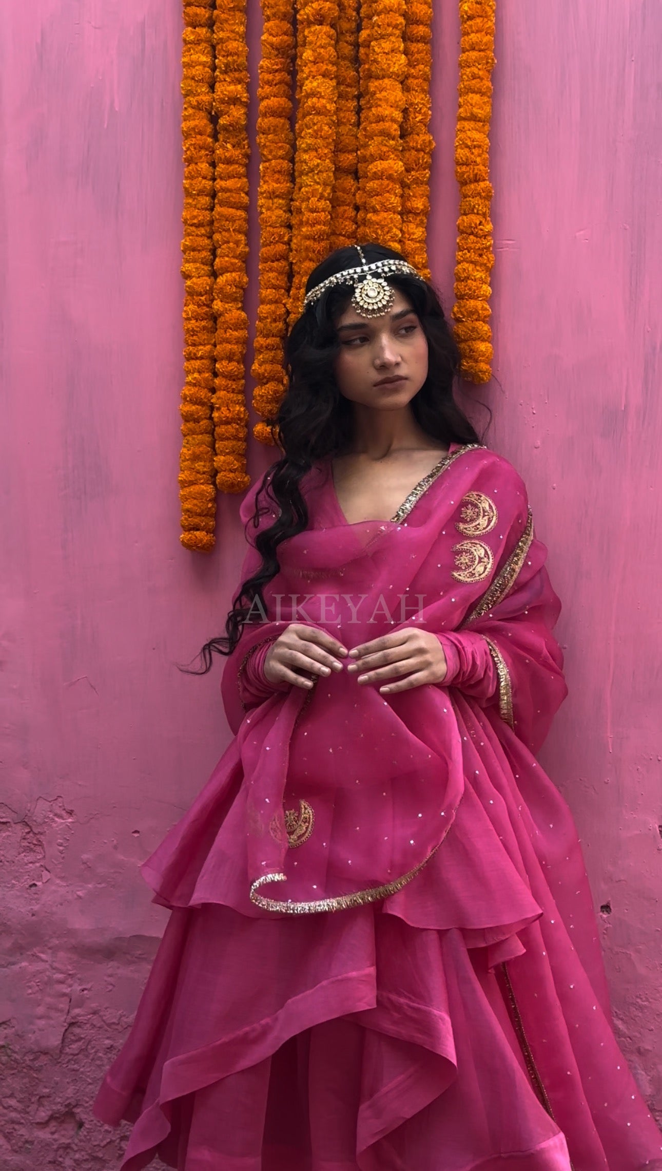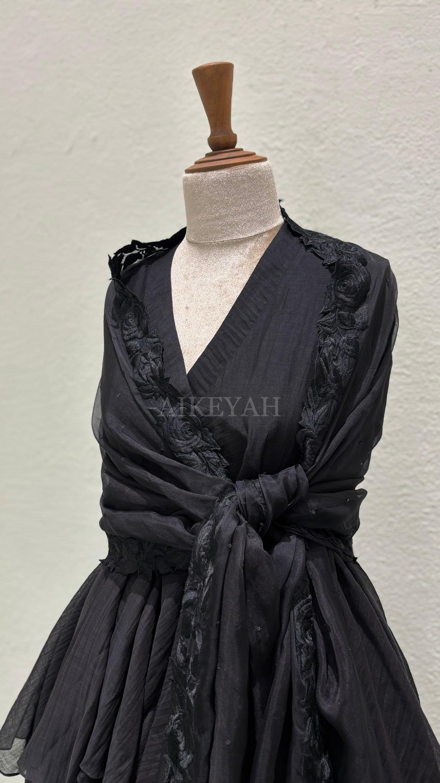 The most comforting and a forgiving silhouette combined with all precious Aikeyah's elements makes this a perfect ensemble for all Indian summer soirees.