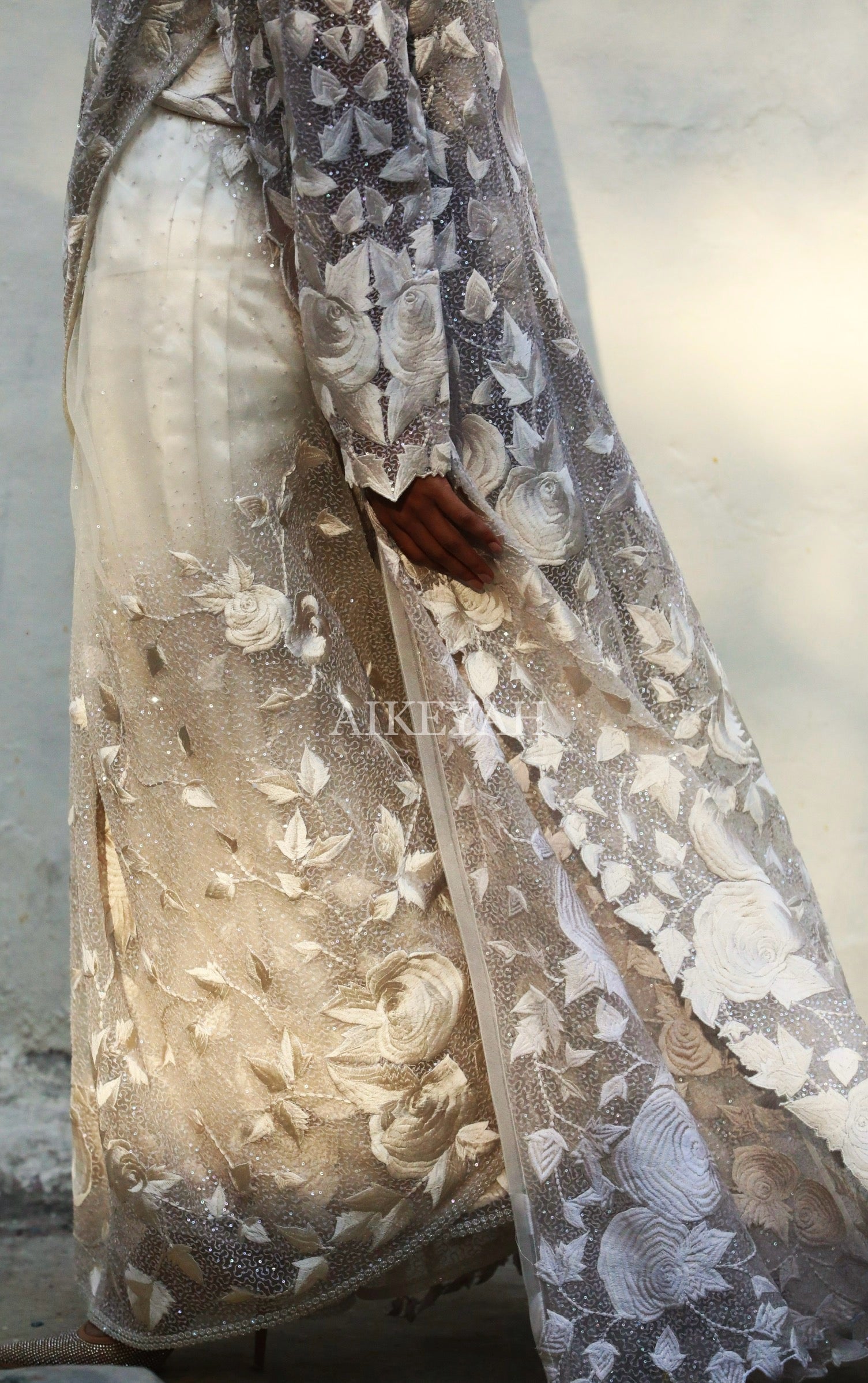 At Aikeyah, the garments are handmade and hand embroidered with very fine delicate materials , using only pure fabrics like silks, chiffons, organza, chanderi, crepe and 100 % cotton. We also develop our own surfaces using techniques like appliqué, and other surface ornamentations. These beautiful developed fabrics are then stitched into wearable clothing. Thereby, requiring utmost care in handling and maintaining, making it imperative to be gentle with all Aikeyah’s Clothing.