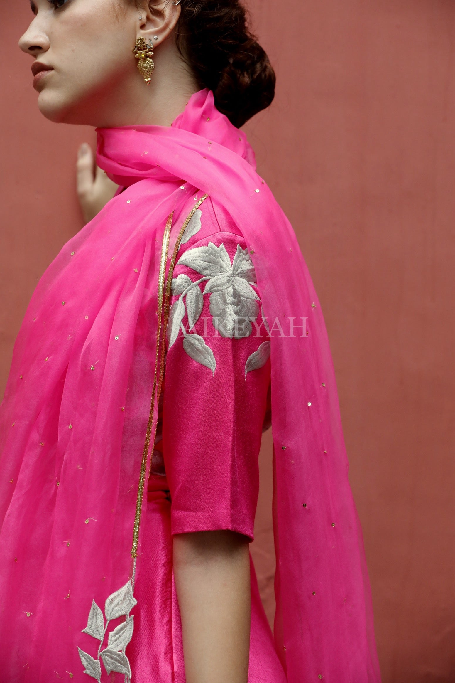 At Aikeyah, the garments are handmade and hand embroidered with very fine delicate materials , using only pure fabrics like silks, chiffons, organza, chanderi, crepe and 100 % cotton. We also develop our own surfaces using techniques like appliqué, and other surface ornamentations. These beautiful developed fabrics are then stitched into wearable clothing. Thereby, requiring utmost care in handling and maintaining, making it imperative to be gentle with all Aikeyah’s Clothing.