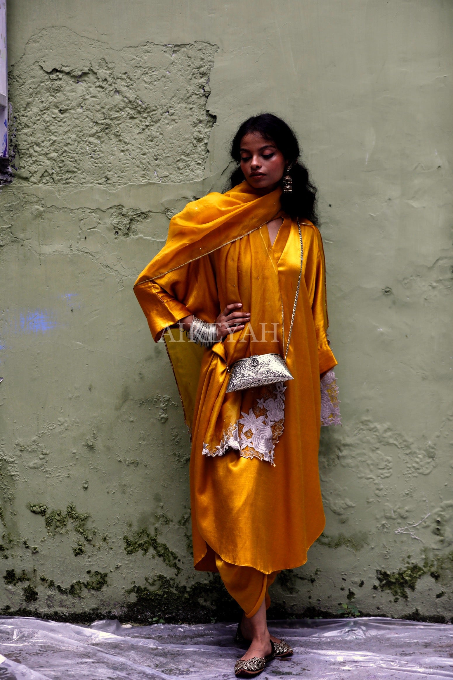 At Aikeyah, the garments are handmade and hand embroidered with very fine delicate materials , using only pure fabrics like silks, chiffons, organza, chanderi, crepe and 100 % cotton. We also develop our own surfaces using techniques like appliqué, and other surface ornamentations. These beautiful developed fabrics are then stitched into wearable clothing. Thereby, requiring utmost care in handling and maintaining, making it imperative to be gentle with all Aikeyah’s Clothing.