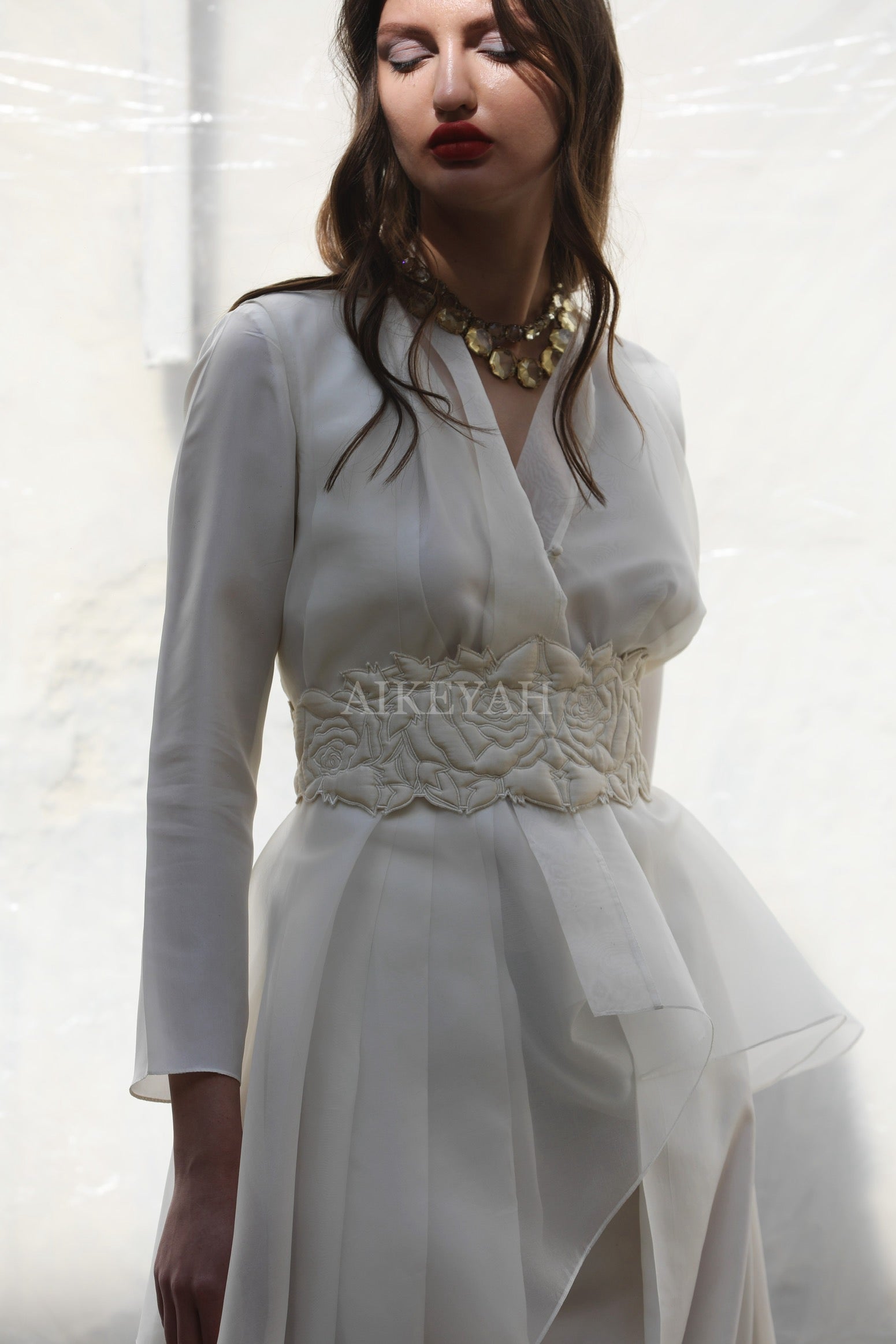 At Aikeyah, the garments are handmade and hand embroidered with very fine delicate materials , using only pure fabrics like silks, chiffons, organza, chanderi, crepe and 100 % cotton. We also develop our own surfaces using techniques like appliqué, and other surface ornamentations. These beautiful developed fabrics are then stitched into wearable clothing. Thereby, requiring utmost care in handling and maintaining, making it imperative to be gentle with all Aikeyah’s Clothing.
